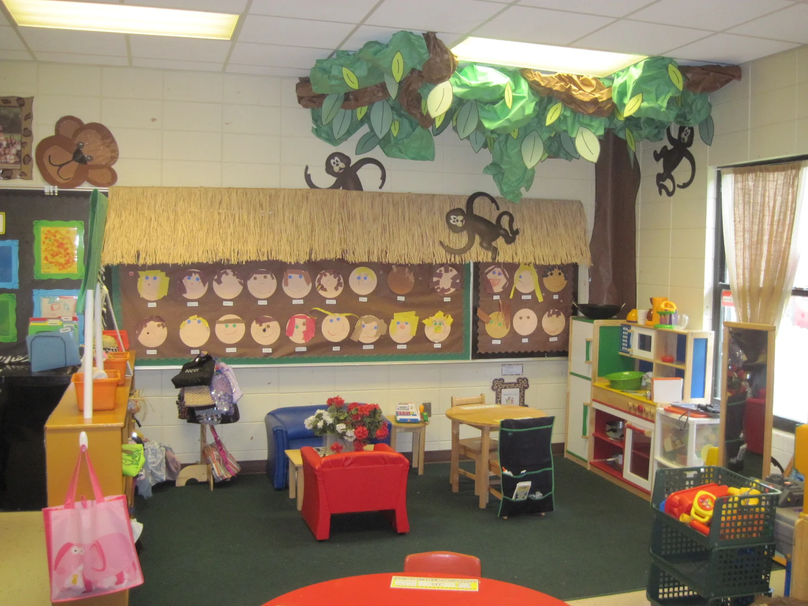 First things first...welcome to the jungle! Pre-K is often loud...silly...and wild...just like a jungle. Hence...our jungle themed classroom. We are super lucky to have not just one wild room...but two! One room is for learning times...and the other is for centers. Yes...it took forever to organize and decorate...but I would have it no other way. Take a peek!
