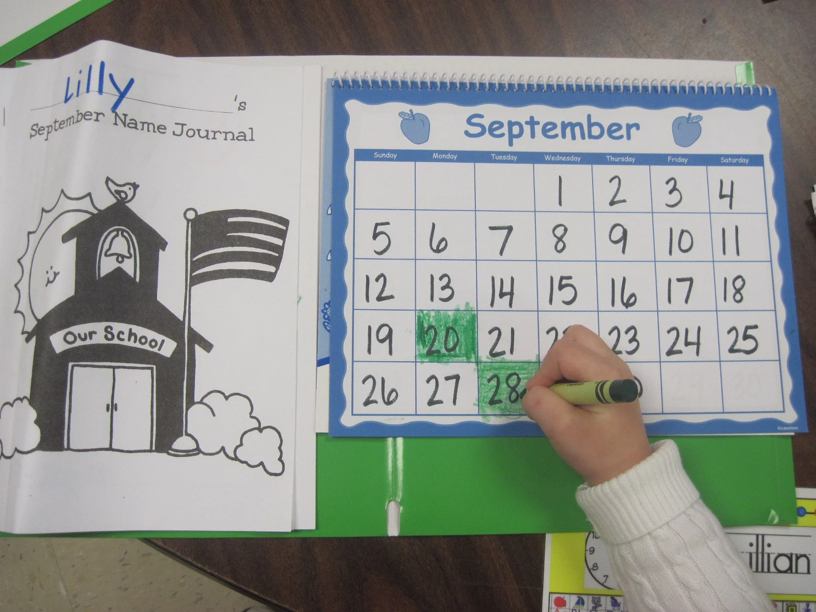 "I have to sign in for work....you have to sign in for work" This is what I told my little loves this morning as I introduced them to our daily name journals and attendance calendars. Each morning when we arrive in our classroom they must unpack...color thier attendance and sign in. This morning it took us 30 minutes to get this routine down...hopefully tomorrow...not so long.