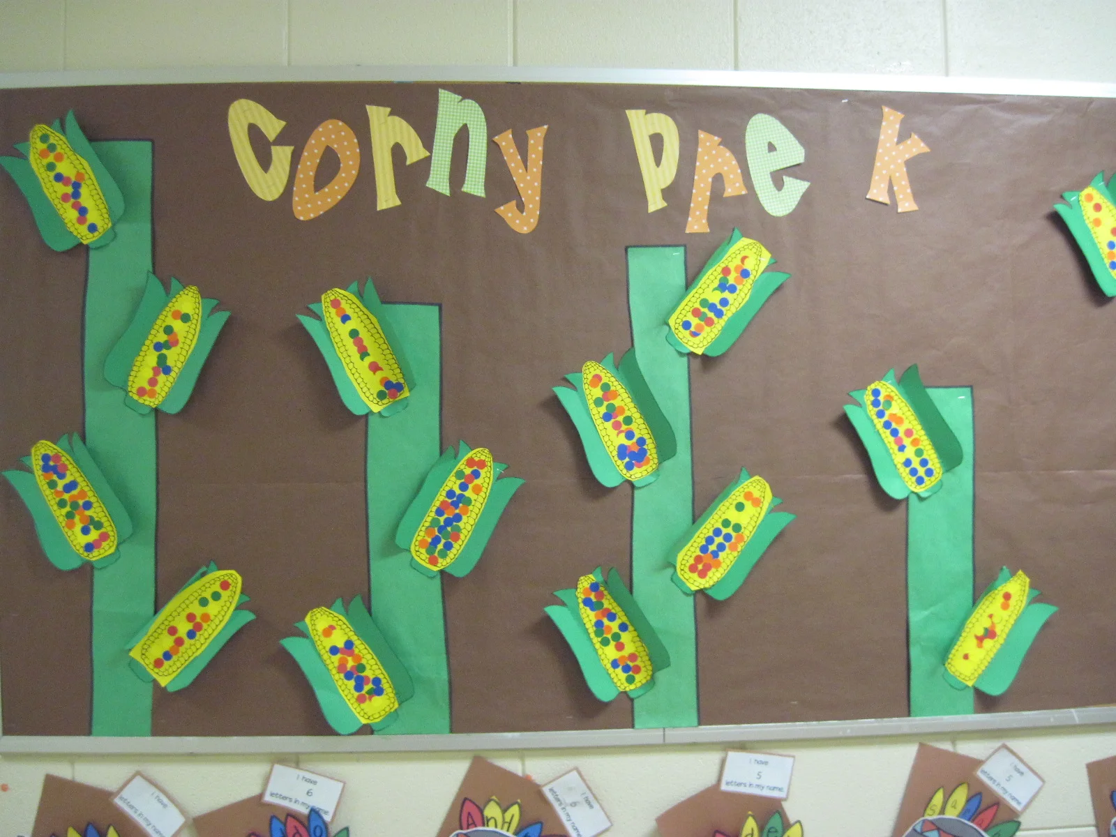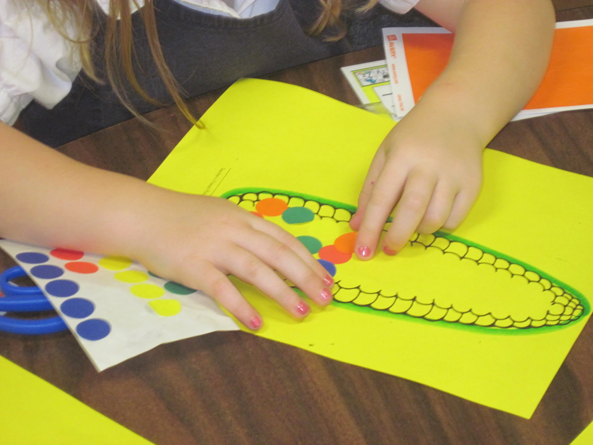 I love...love...love making bulletin boards! Yes...I know...crazy! But I do...I love them! I love seeing my kiddos work on the walls...and I love seeing their proud little faces as they pass by their masterpieces! This week we have put up our Thanksgiving bulletin board. After becoming Indian corn experts we use our fine motor skills (cutting and peeling) to make our very own version of Indian corn...and voila...our bulletin board was made!