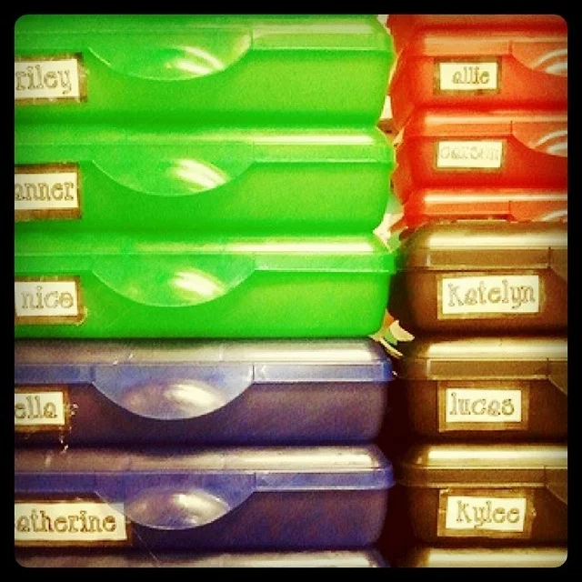 For projects at our "work chair" we keep our crayons safely in our chairback in our handy dandy crayon holder.